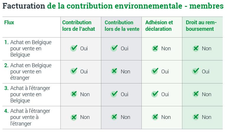 Le tableau ci-dessous indique clairement dans quels cas vous devez oui ou non facturer la contribution environnementale. Vous pouvez également télécharger ce tableau en bas de page.