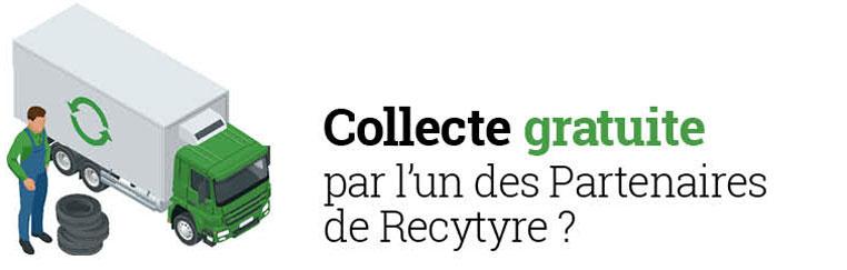 Seuls les pneus soumis à cette obligation de reprise font partie du système Recytyre. C'est la raison pour laquelle une contribution environnementale est payée. La collecte gratuite en découle. Plus bas sur cette page, vous trouvez un aperçu des pneus qui peuvent ou pas être collectés gratuitement.