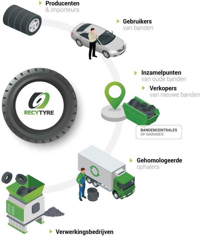 De financiering van het Recytyre-systeem is gegarandeerd o.b.v. de milieubijdragen.