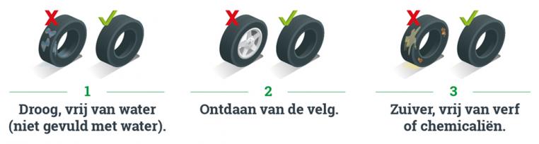 - Maak je oude banden vrij van water - ze moeten droog ingezameld worden;
