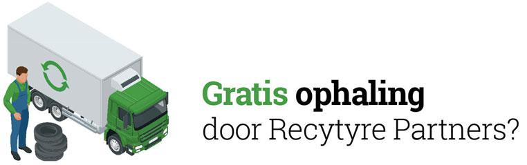 Uiteraard moet je je oude banden weer kwijt. Dat doe je het best via een erkende Recytyre Partner (een gehomologeerd ophaler). Die haalt je banden gratis op.